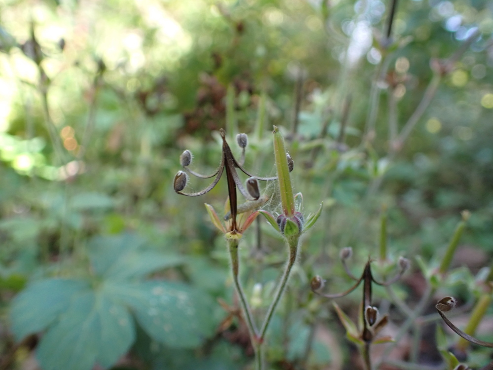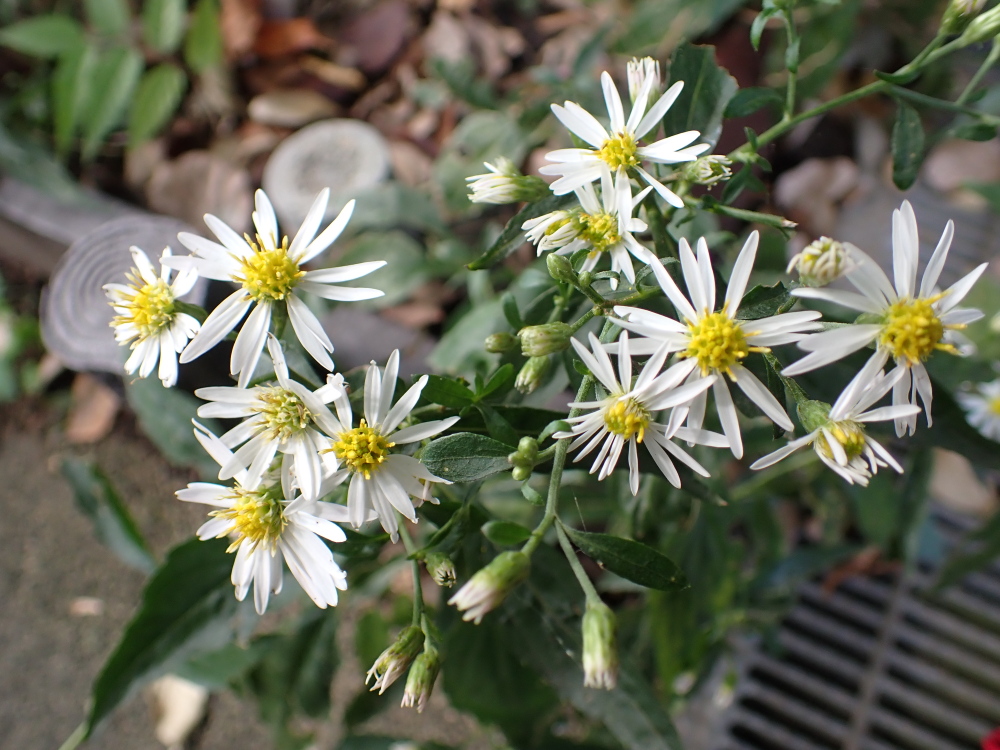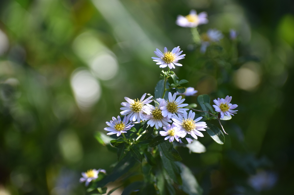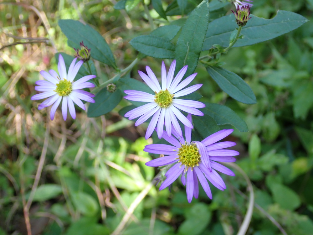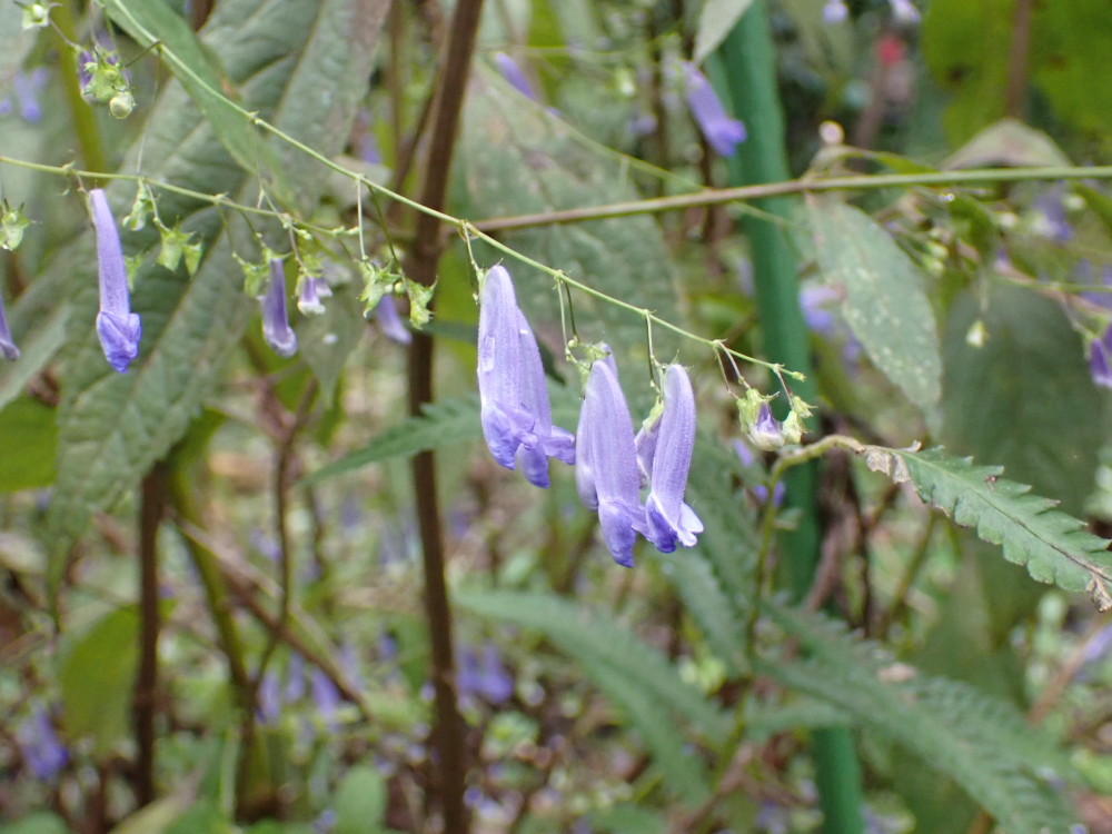 8~10月に、12~20cmの花柄を直立し、その先に淡紫色の花を横向きにつける。
